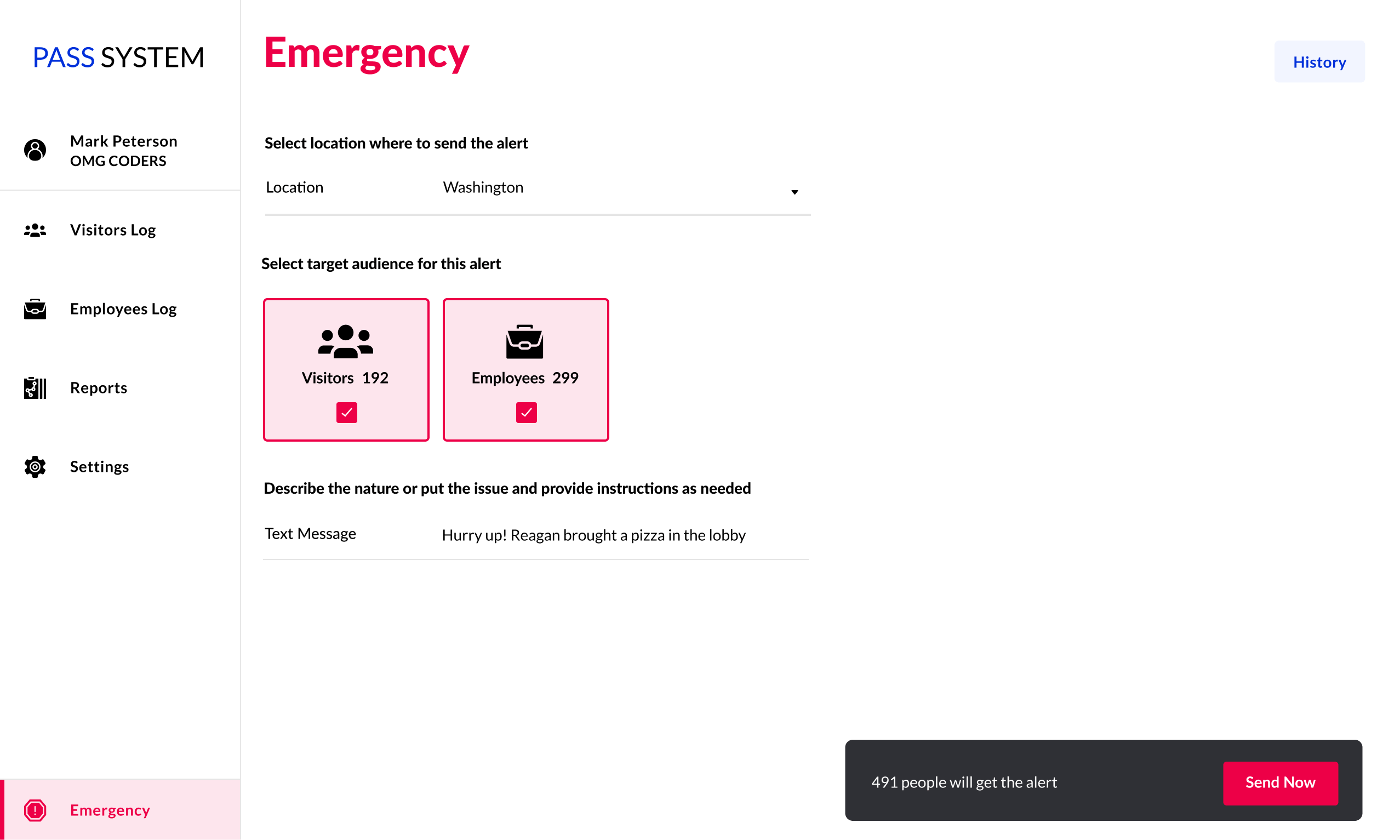 При пожаре или другом ЧП система рассылает сотрудникам и посетителям предупреждения по СМС.