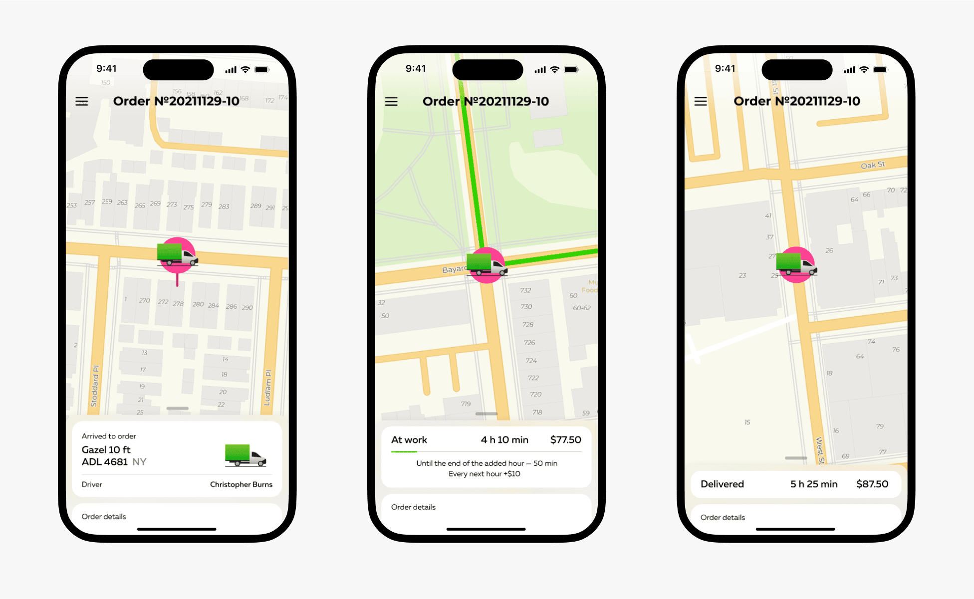 Если запланированного времени не хватает, то заказ продлевается на час с перерасчетом итоговой суммы. Прогресс-бар заказа становится розовым, а клиенту приходит пуш-уведомление об изменении заказа.