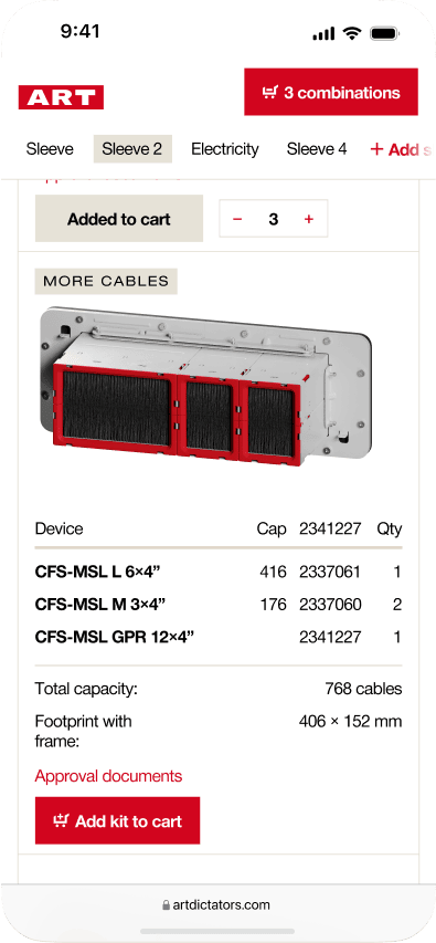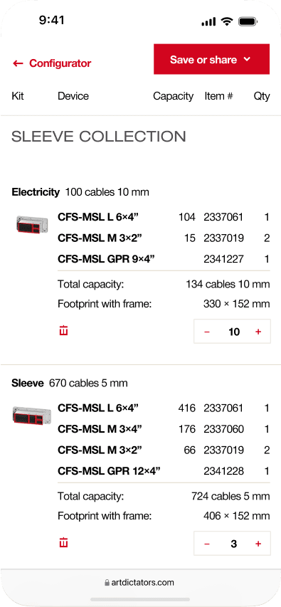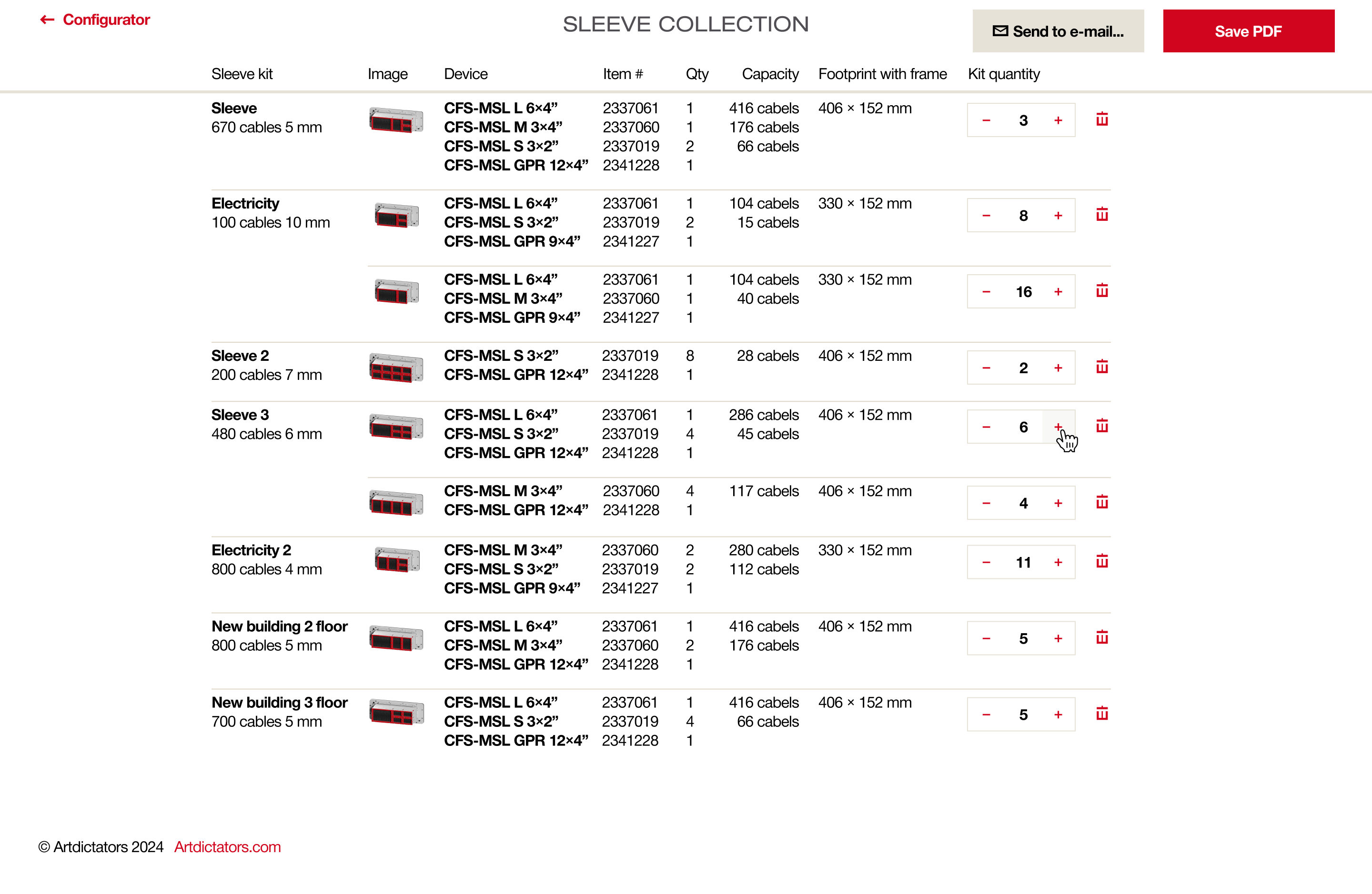 Мы задизайнили конфигуратор кабель-каналов. В нём инженеры подбирют каналы под нужное количество кабелей.