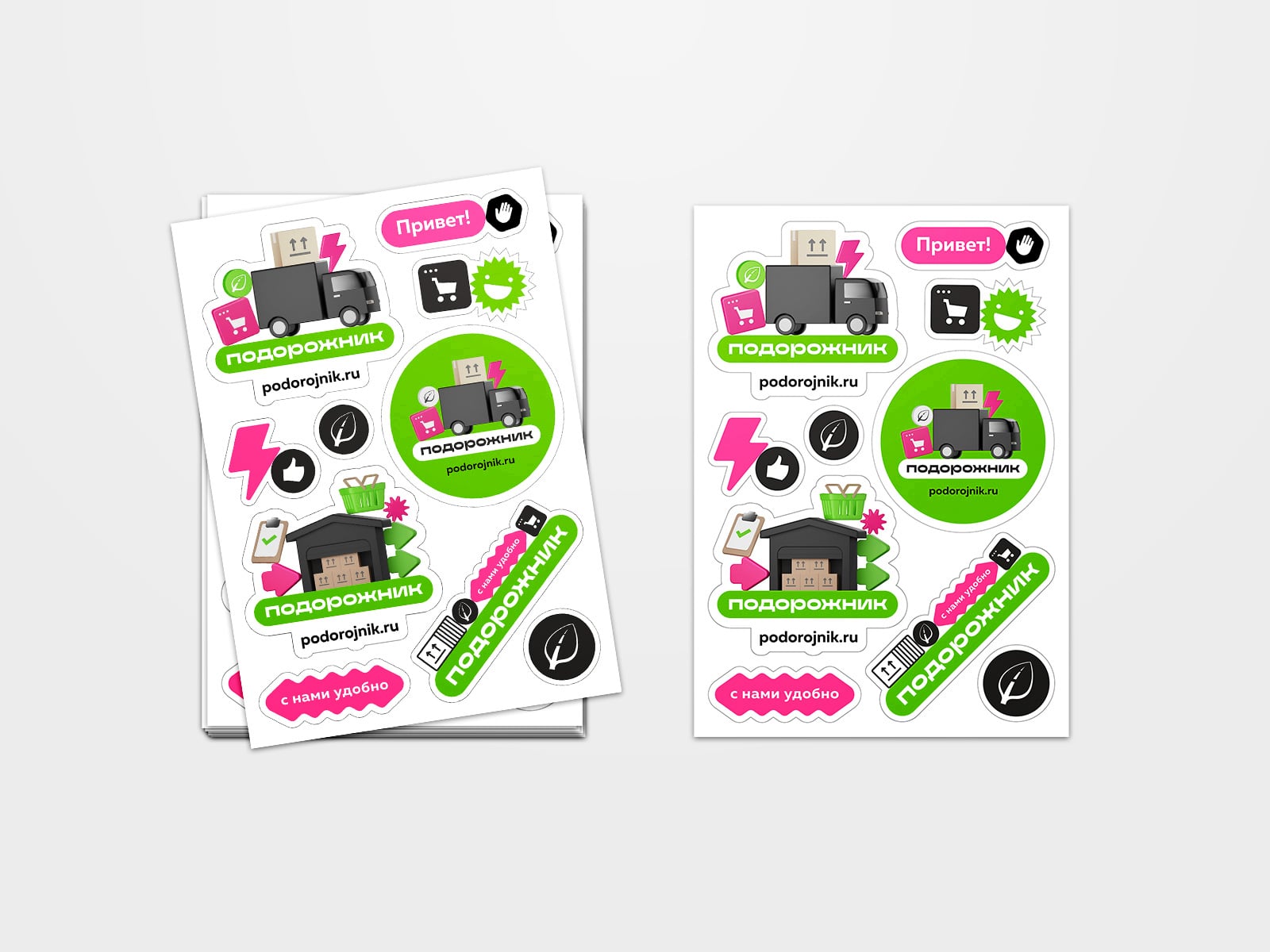 В 2014 году мы разработали вторую версию айдентики. В 2022–23 мы полностью обновили айдентику, разработали новый сайт и приложения, задизайнили автопарк, форму, мерч и помогли показать Подорожник на двух отраслевых выставках.